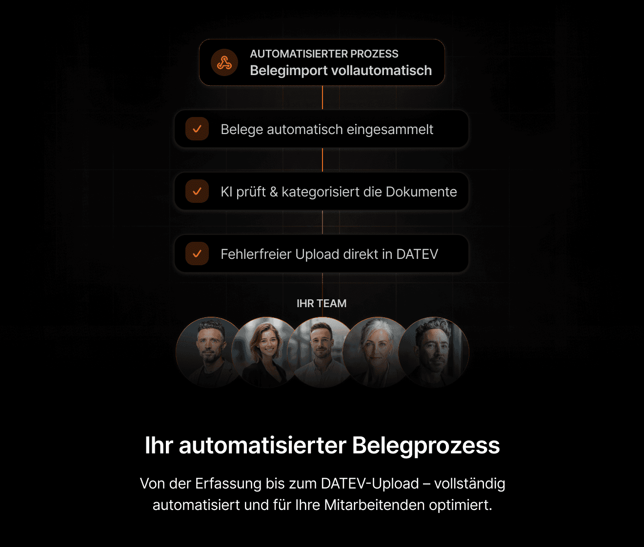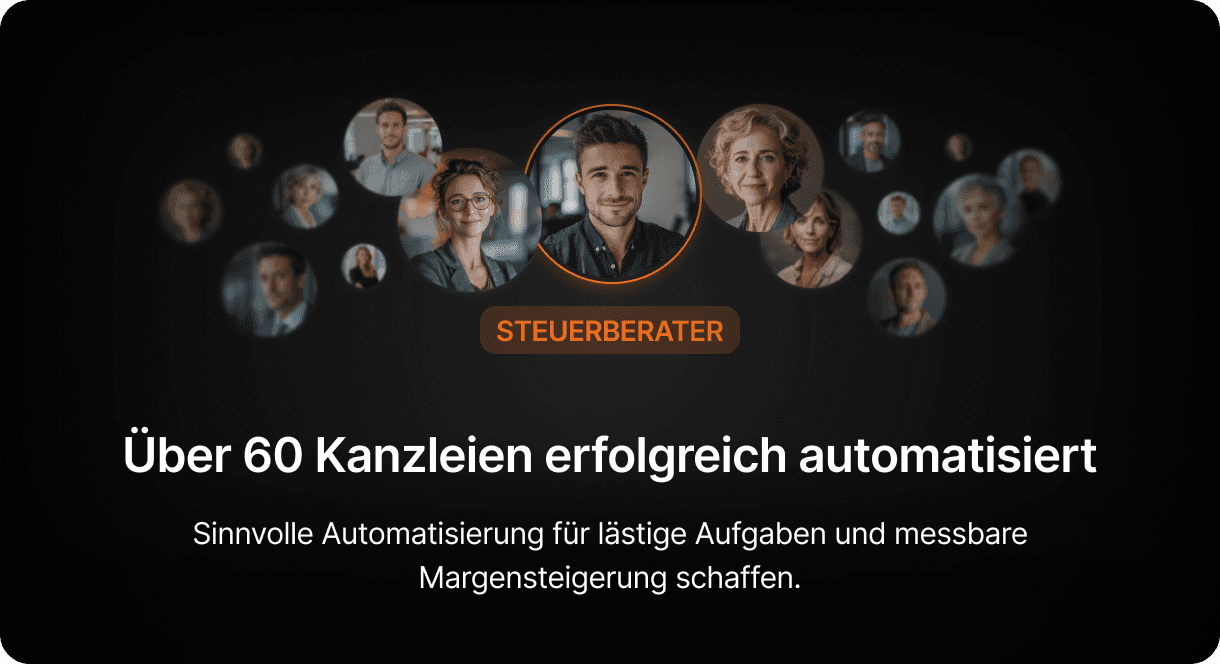 Wir automatisieren DATEV-Prozesse mit KI – zuverlässig, sicher und kanzleigerechnet. So gewinnen Sie Zeit für Beratung, statt sich mit Routineaufgaben aufzuhalten.